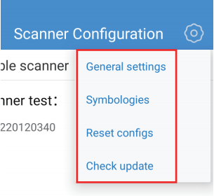 Klicken Sie auf die drei Punkte in der oberen rechten Ecke, um die Daten in Bezug auf die Symbologieeinstellungen in die Konfigurationsdatei zu exportieren, Sie können auch den QR-Code scannen, der durch ein anderes Gerät erscheint, Sie können die entsprechenden Symbologieeinstellungsdaten erhalten, die Symbologieeinstellungen sind noch nicht als Importfunktion implementiert, die Exportfunktion ist nur dazu da, den Benutzern zu helfen, zu verstehen, welche Elemente eingestellt wurden, um eine Rolle zu spielen!