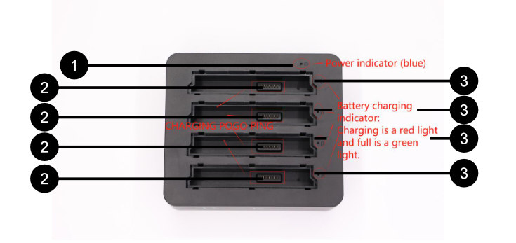 Power LED Leuchtet Blau, wenn die Batterieladestation mit Strom versorgt wird. |