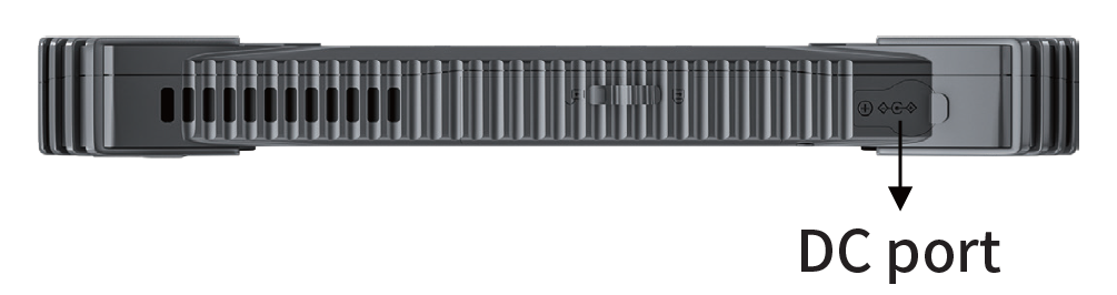 - Plug the DC power cord of the power adapter into the power jack of the tablet computer. The diagram shows how to connect to the Rocktab S512. The Rocktab S508 and Rocktab S510 models are charged via the USB-C port.
