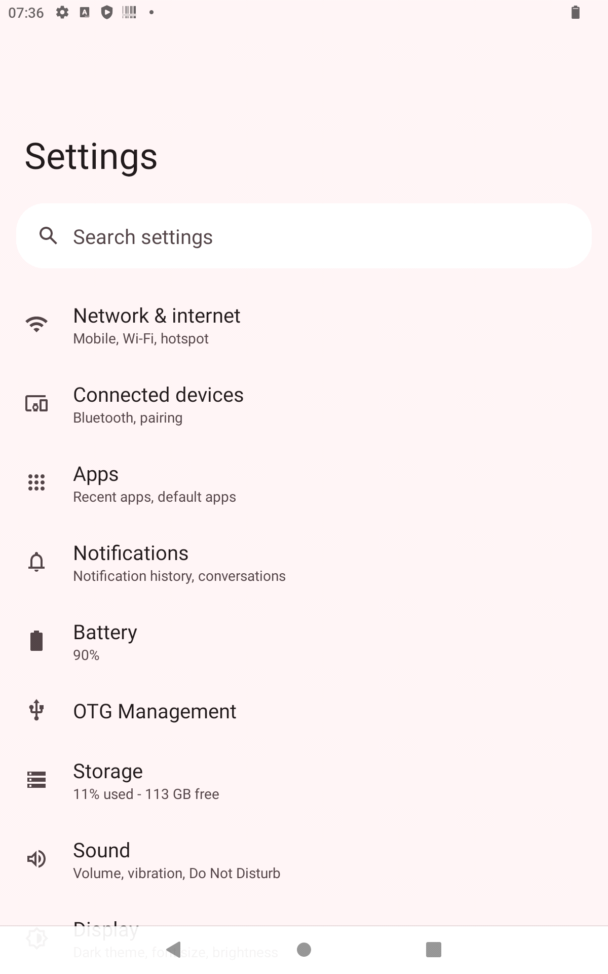 Here you will find various predefined "shortcuts" to access specific settings pages without giving access to the entire settings area of the device.