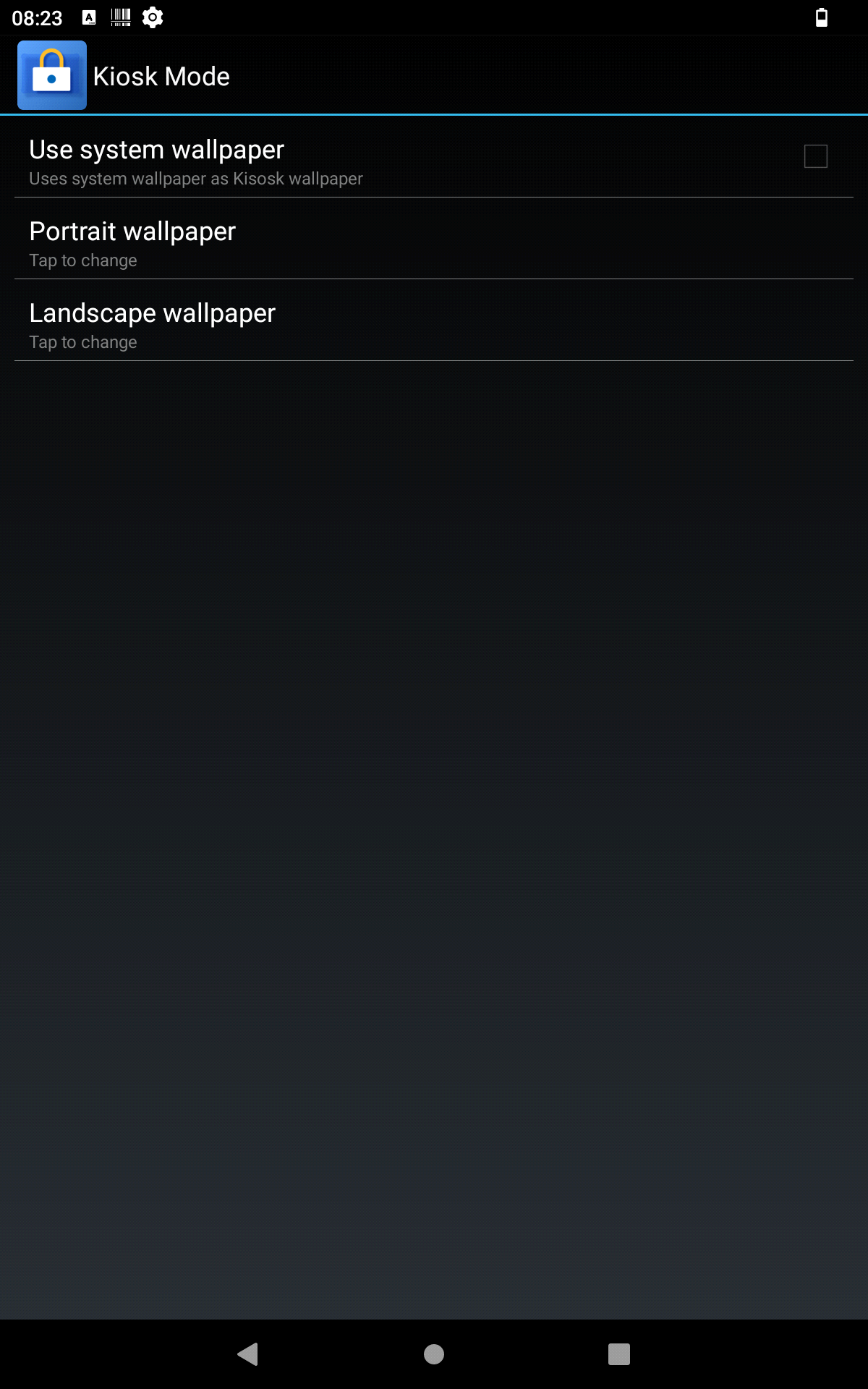 Here you can select whether Kisok mode should use the device's wallpaper by checking or unchecking the box next to "Use system wallpaper". Alternatively, you can also set your own background from the images available on the device.