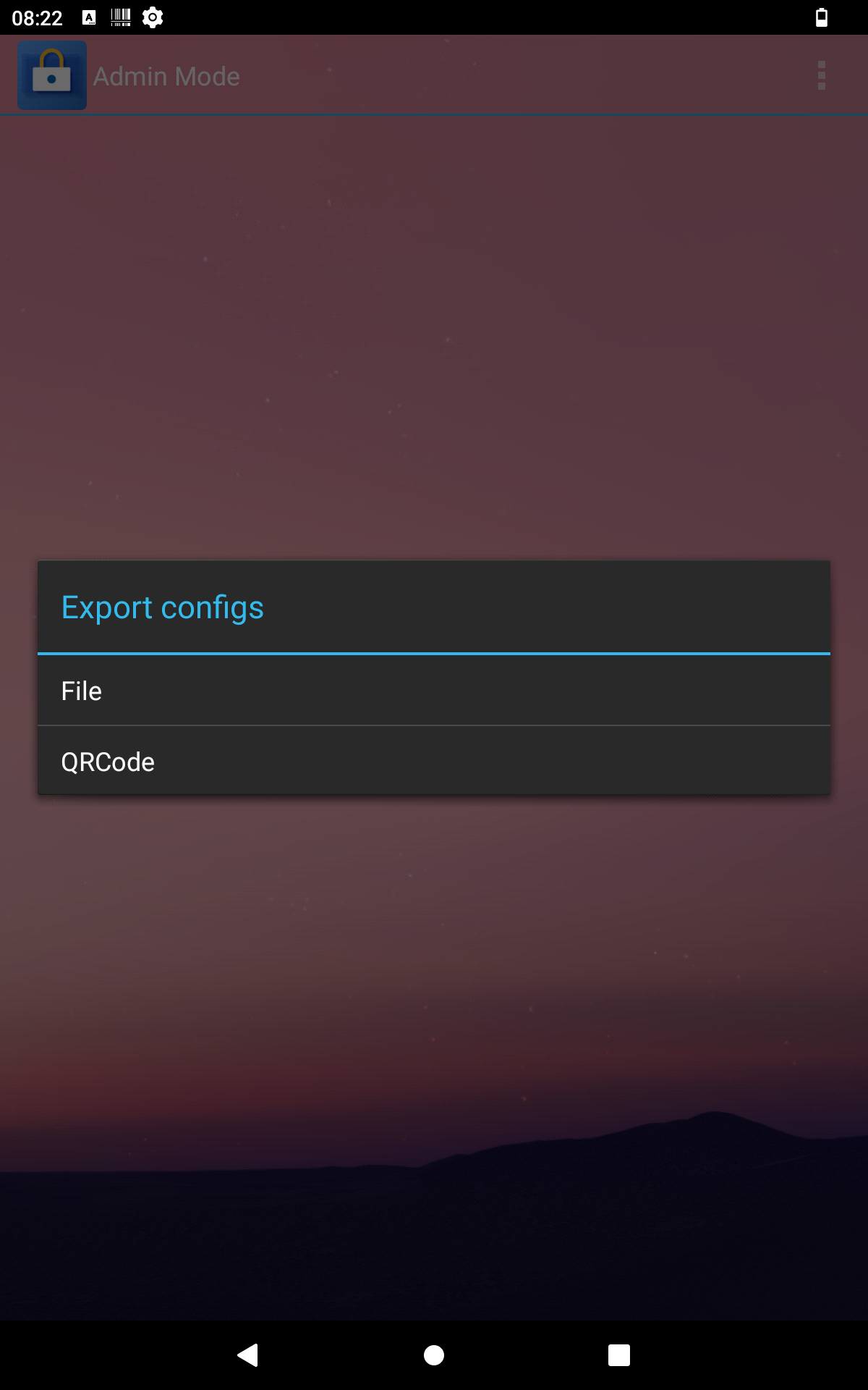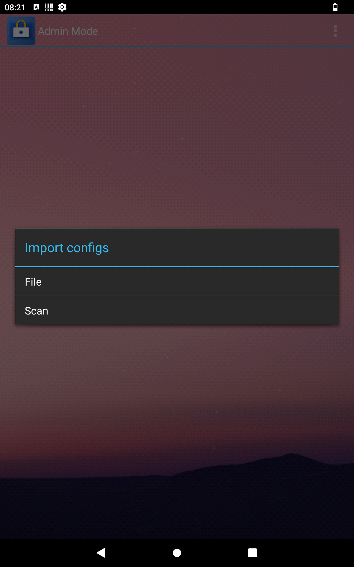 Under "Import conifgs" you can import kiosk mode settings from already configured devices in the form of configuration files or by scanning a QR code.