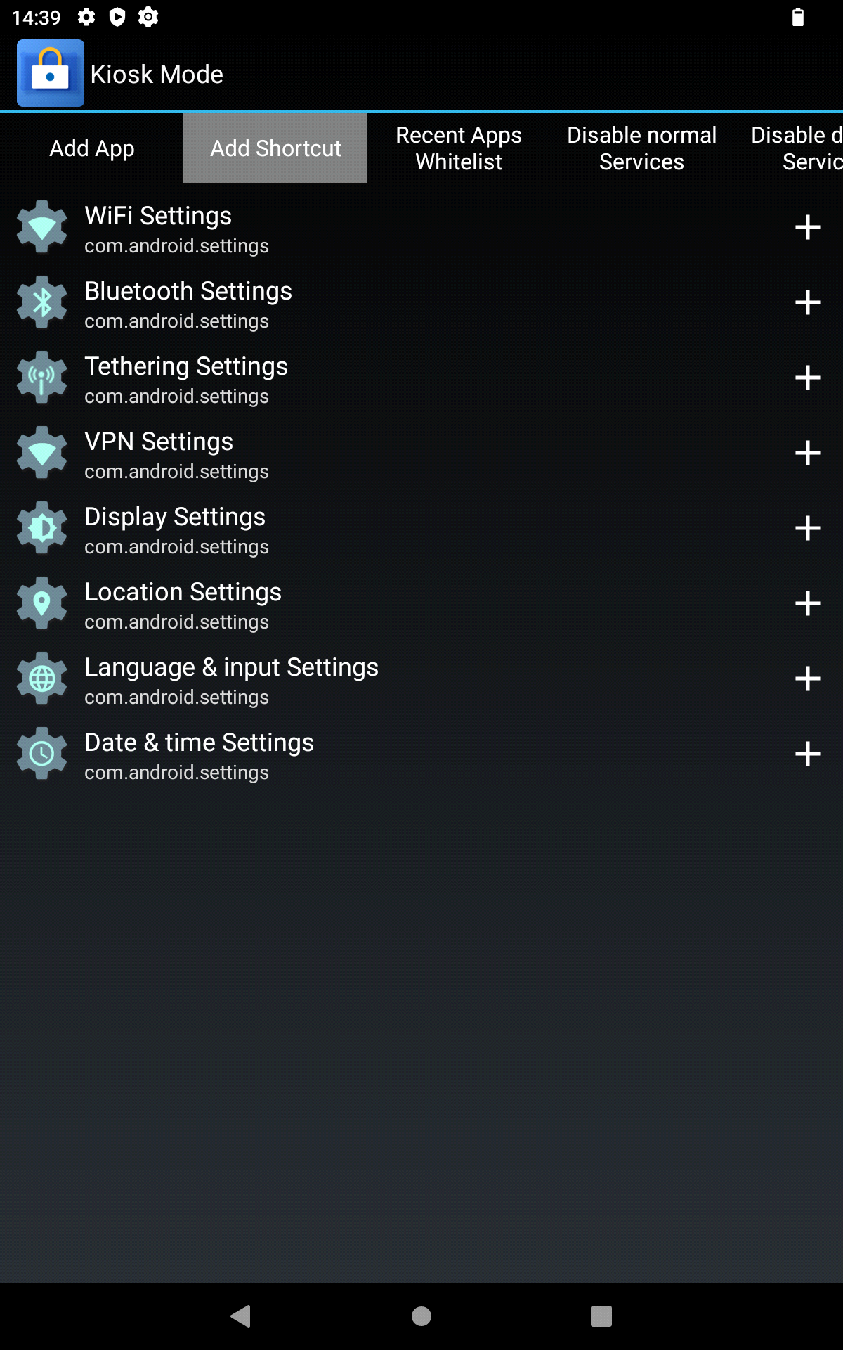 Here you can block system services of the device so that they are also deactivated outside of Kiosk mode. To do this, press or click on the tick symbol on the right in the column.