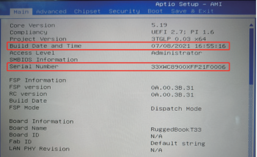 - Build Date and Time(BIOS version date): Outputs the Bios version of the computer