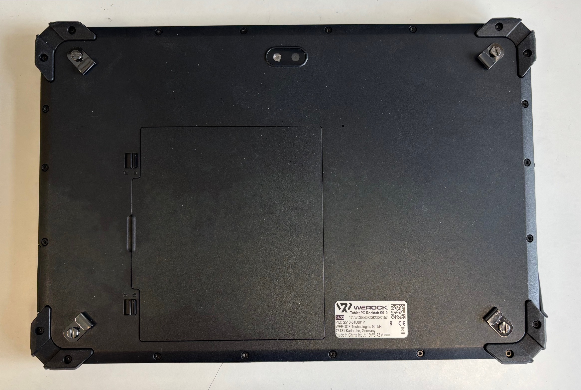 - Legen Sie das Tablet mit der Rückseite nach oben vor sich auf eine ebene, stabile Fläche.