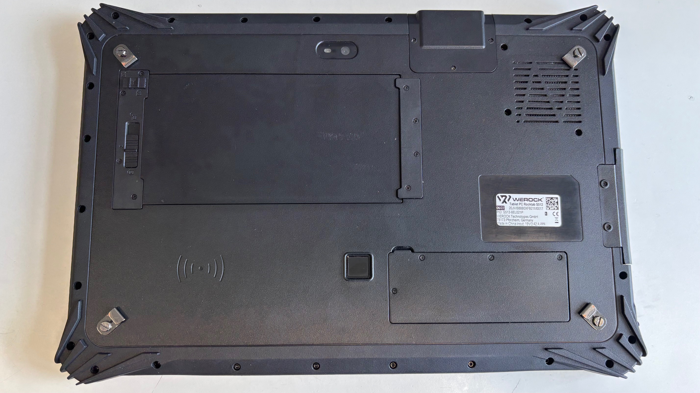 - Legen Sie das Tablet mit der Rückseite nach oben vor sich auf eine ebene, stabile Fläche.