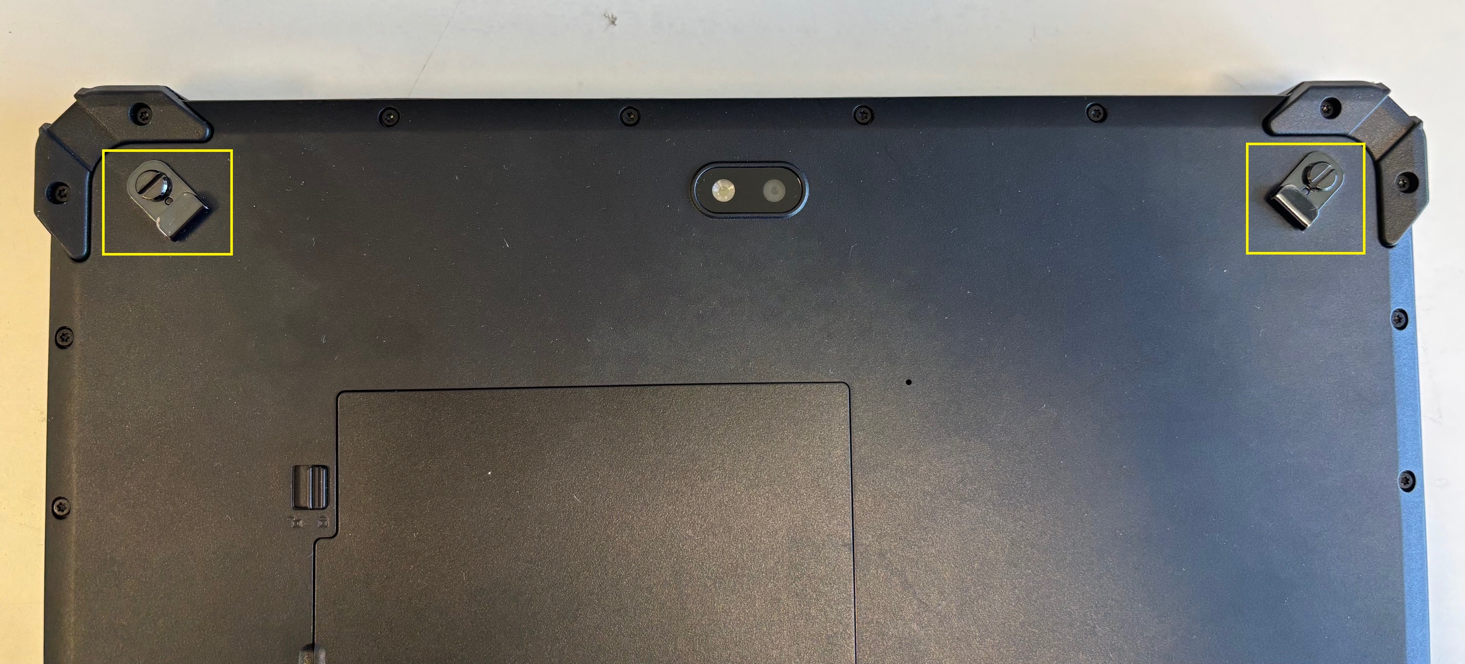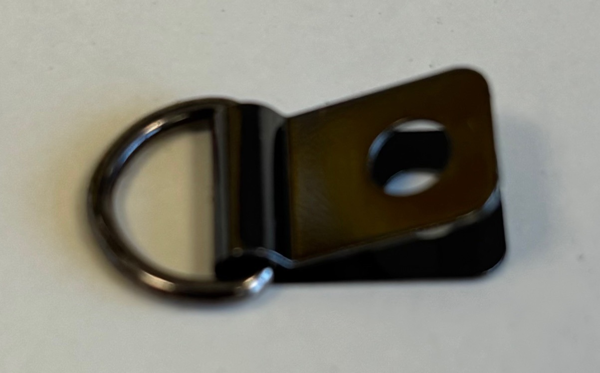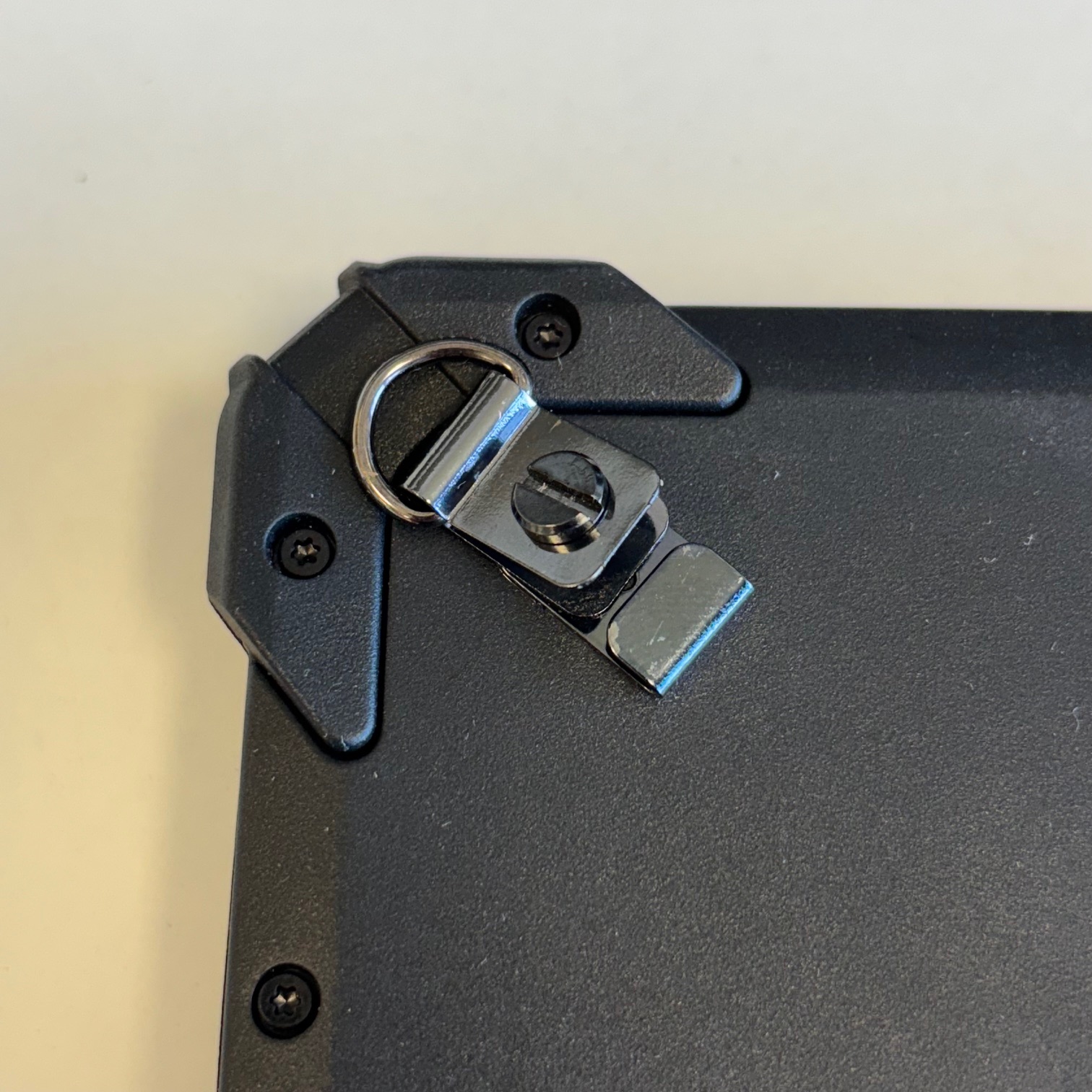 - Achten Sie auf die korrekte Ausrichtung der D-Ringe zu den Ecken hin (siehe Foto). Halten Sie die D-Ringe ggf. während des Festschraubens fest, um ein Verrutschen zu verhindern.