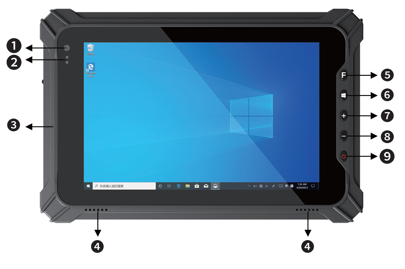 Front camera The integrated front camera can be used for taking photos, video recording or conferencing, and other interactive applications. |