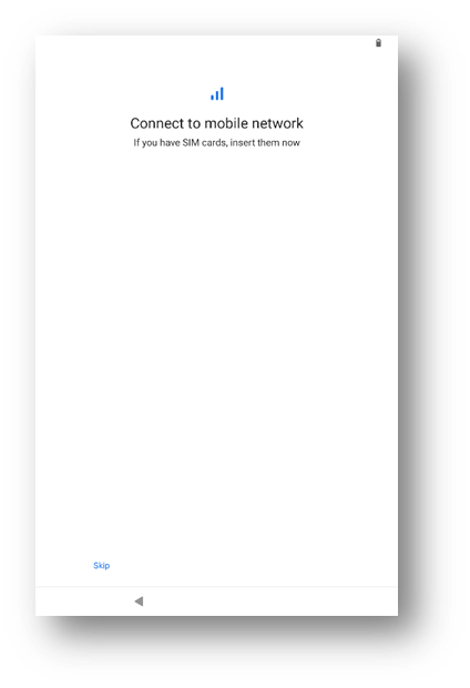 - If you have a SIM card for the , insert it into the device now, otherwise press "Skip" at the bottom left of the screen.
