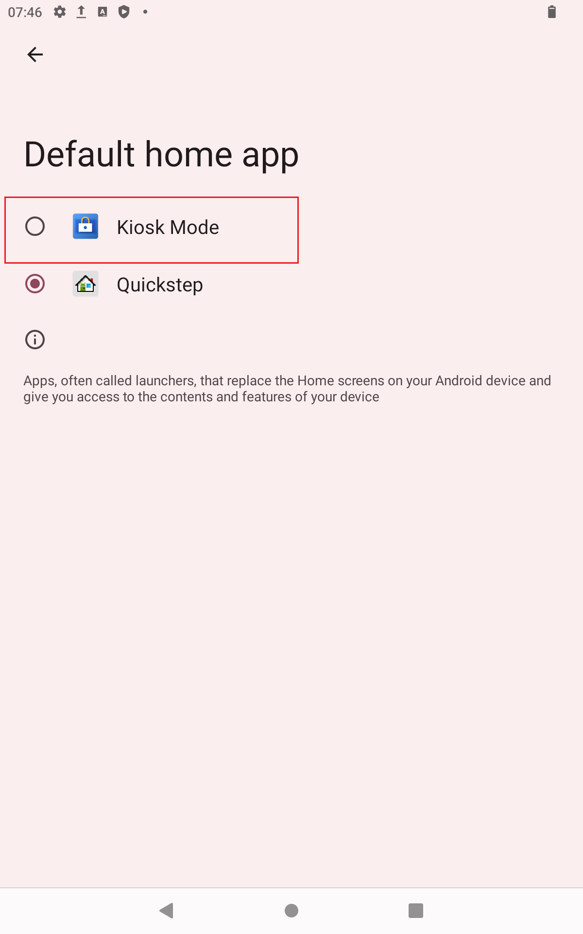 Setting kiosk mode as start app