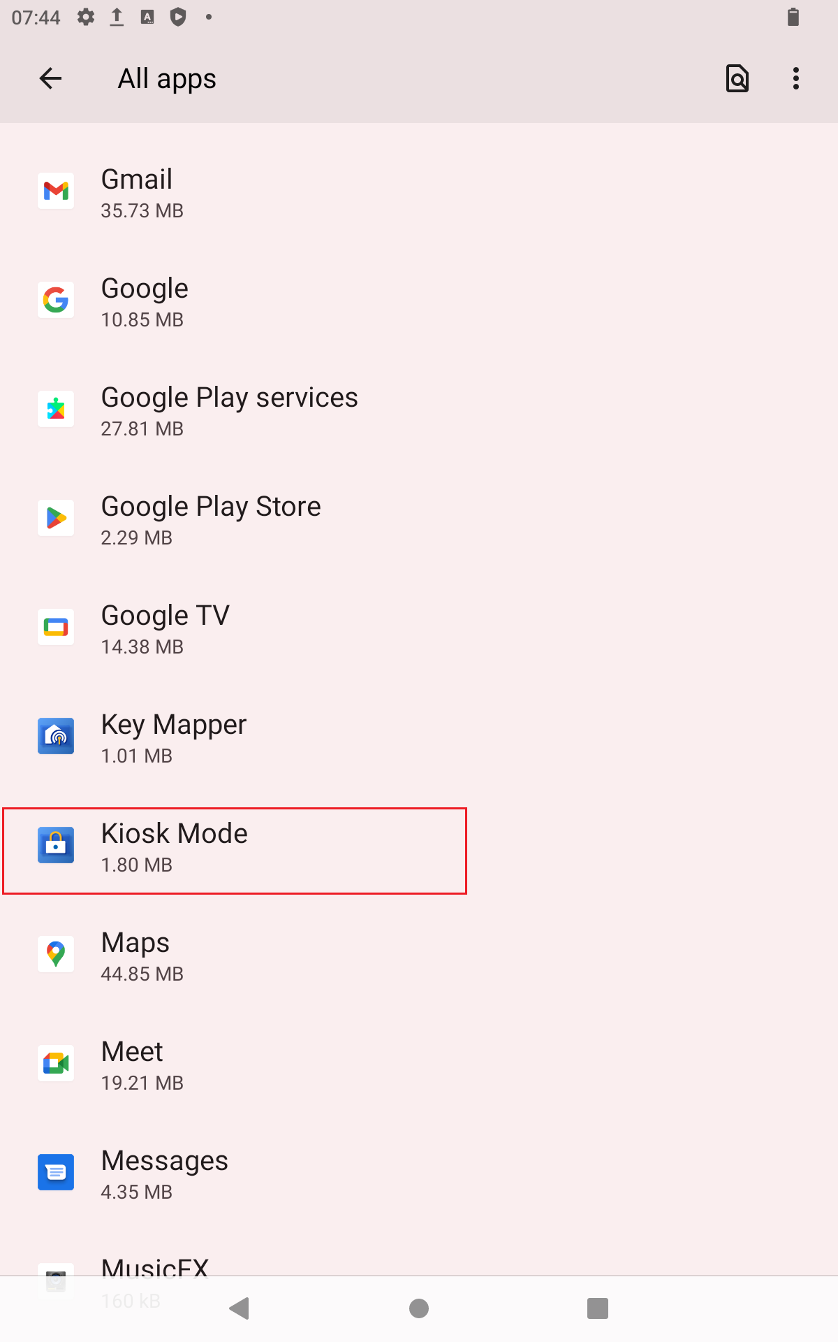 - press the "Kiosk Mode" application with your finger.