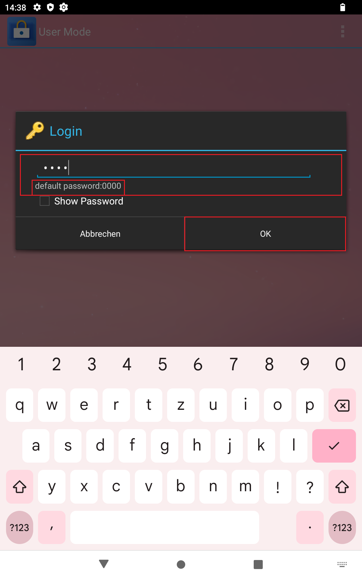 - enter the administrator password in the following window (default value: 0000) and press "OK".