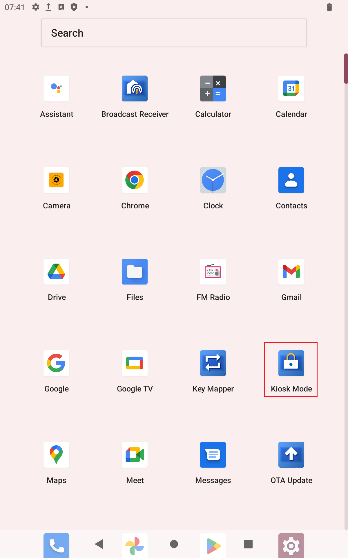 To load directly to kiosk mode after starting the device, the device must be in kiosk mode when it is switched off. In addition to this, the app must be set as the start app in the Android settings. To do this, proceed as follows: