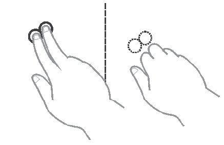 You can interact with your computer by placing two fingers on the screen. Moving your fingers across the screen creates "gestures" that you use to send commands to the computer. Here are the multi-touch gestures you can use: