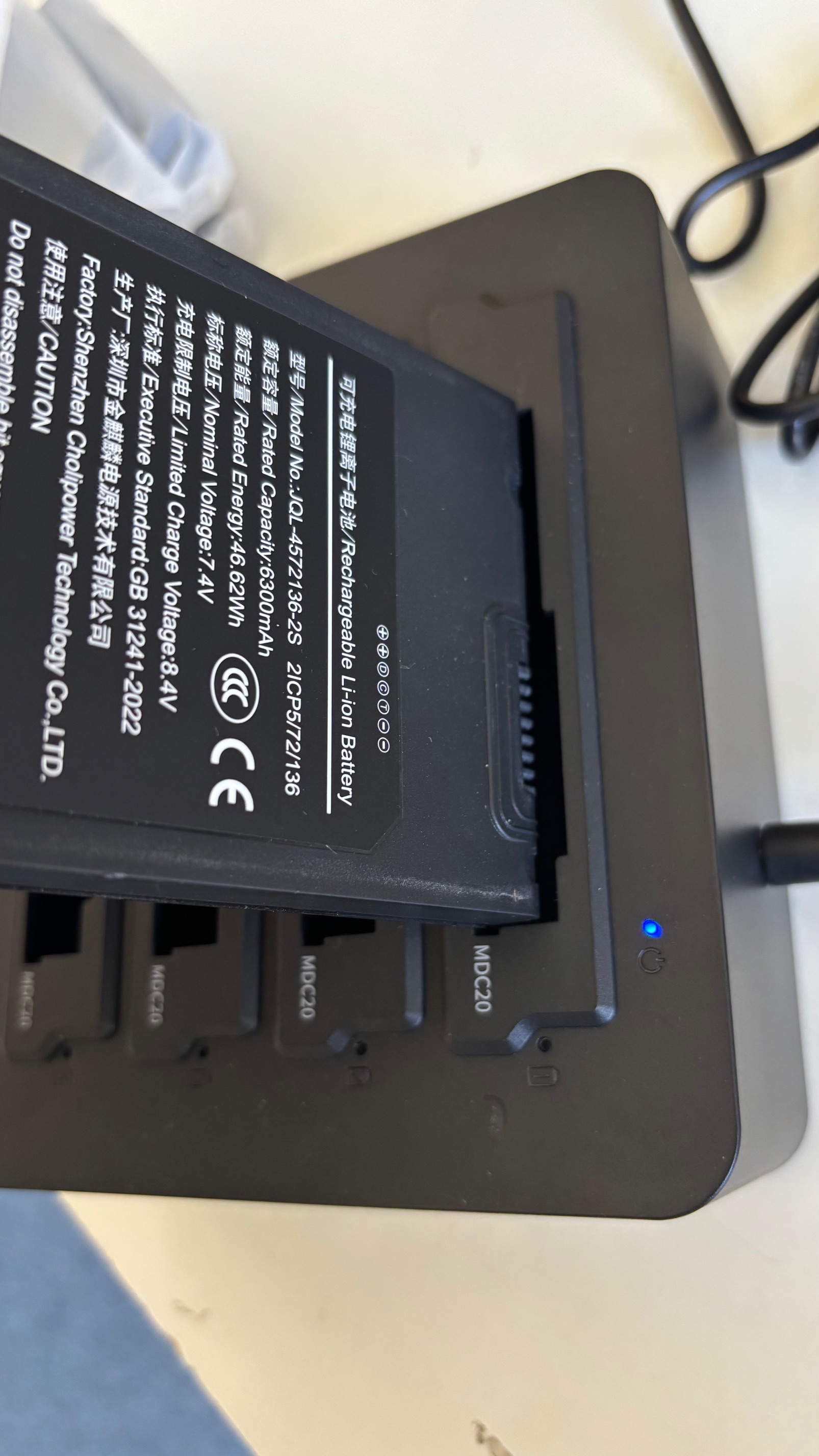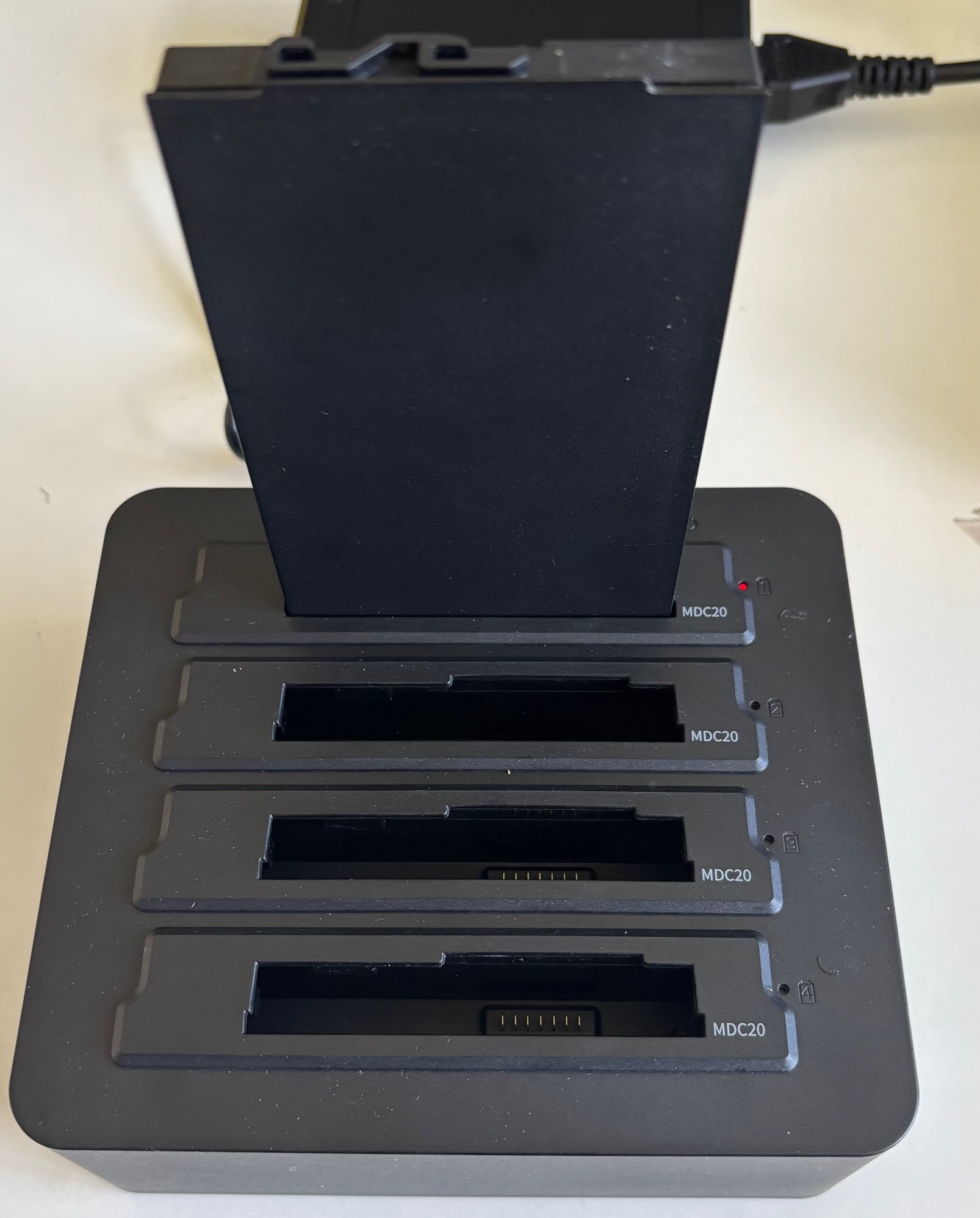 - Verbinden Sie das Netzteil mit der Batterieladestation.