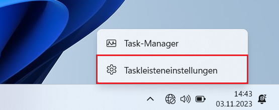 1. Als erstes klicken Sie mit der rechten Maustaste in Ihre Taskleiste. Dort öffnet sich daraufhin ein Kontextmenü. Falls Sie keine Maus angeschlossen haben, dann tippen Sie auf die Taskleiste und halten diese gedrückt bis sich das Kontextmenü öffnet.