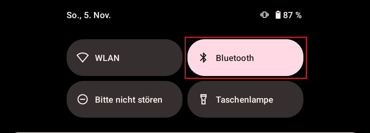 2. Tippen bzw. Klicken Sie auf die “Bluetooth”- Schaltfläche um den Bluetooth-Funk an- bzw. auszuschalten.