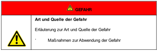 Art und Quelle der Gefahr Erläuterung zur Art und Quelle der Gefahr Maßnahmen zur Abwendung der Gefahr |