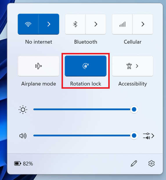- Um die Auto-Rotation auszuschalten, tippen oder klicken Sie die „Rotationssperre“-Schaltfläche an, sodass diese blau dargestellt wird.