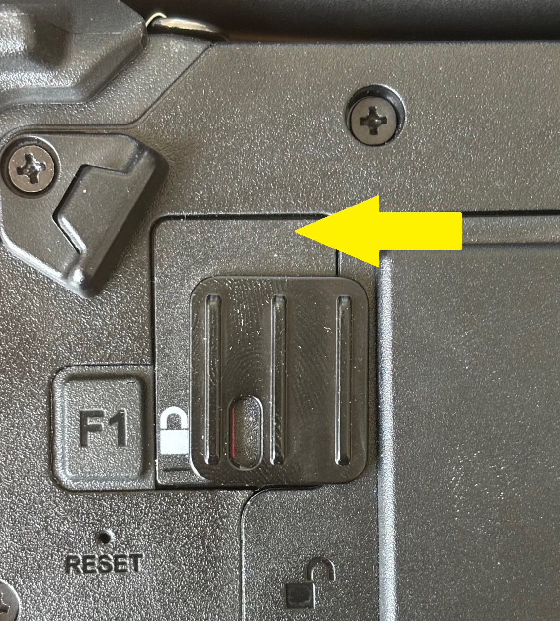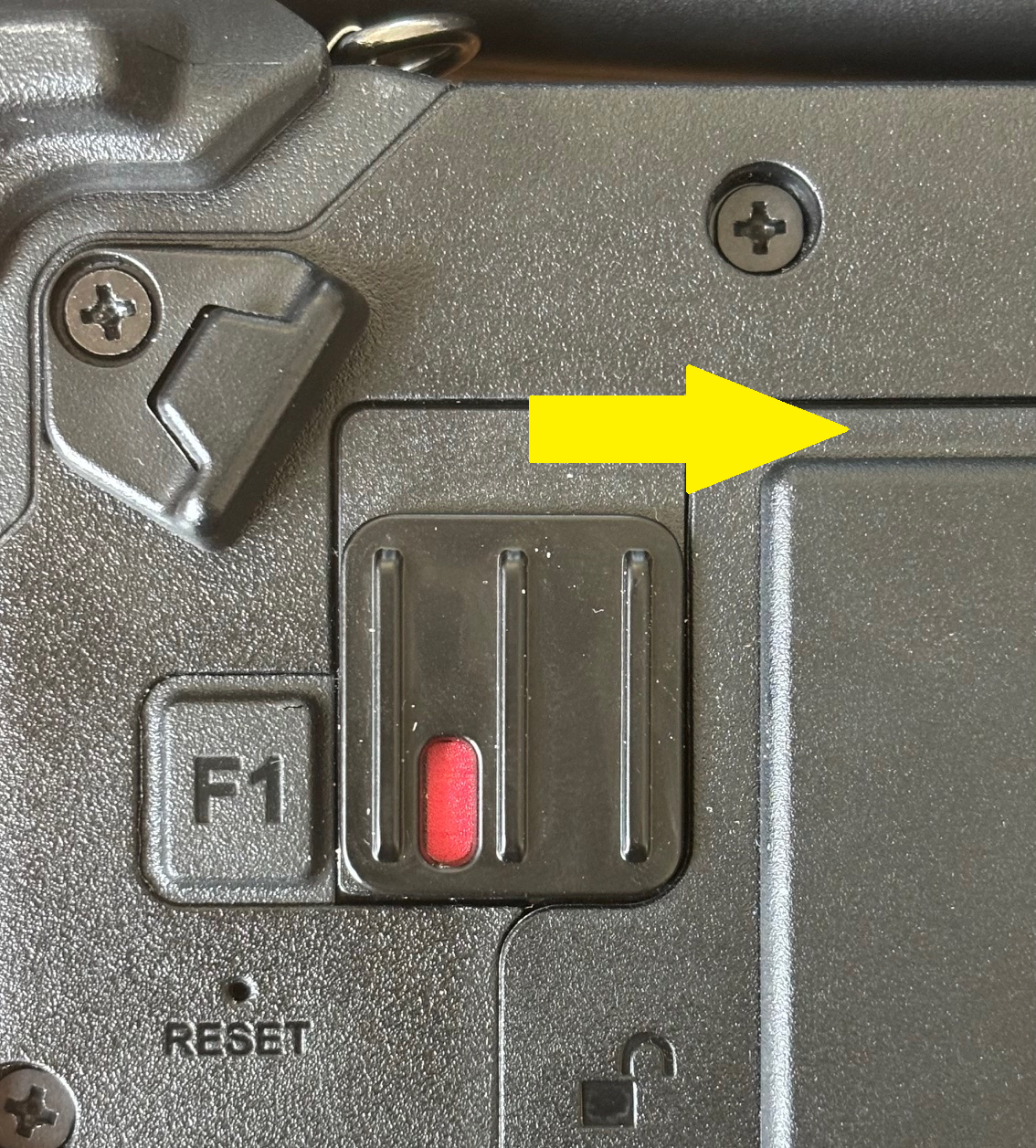 - Verriegeln Sie die Sicherung, indem Sie sie in Richtung des Akkus schieben. Die Sicherung ist korrekt verriegelt, wenn ein Schlosssymbol sichtbar ist.