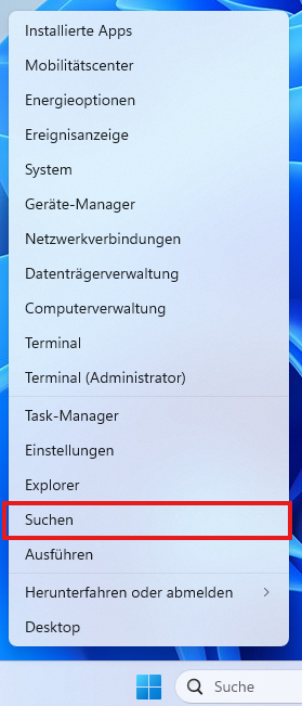 und wählen Sie dann Suchen aus. Wenn Sie Ihre Taskleiste so eingestellt haben, dass die Suchleiste oder das Suchsymbol angezeigt wird, können Sie auch direkt dort suchen.